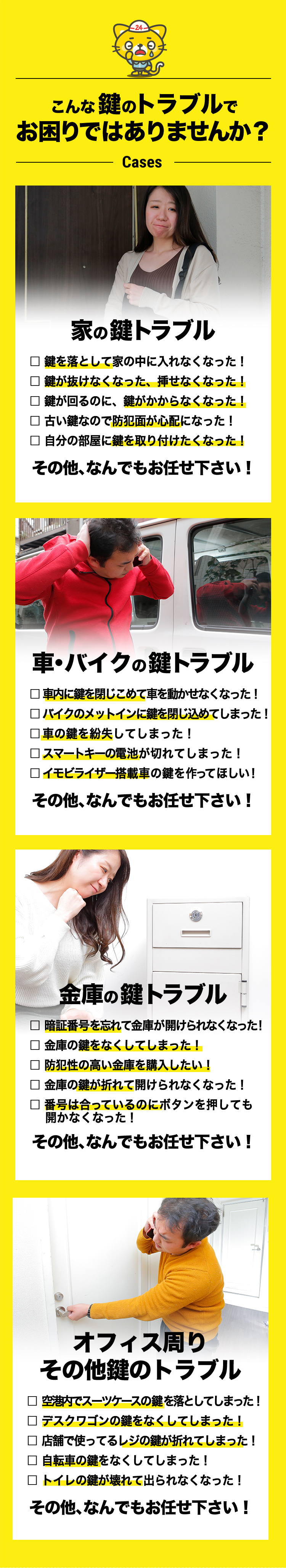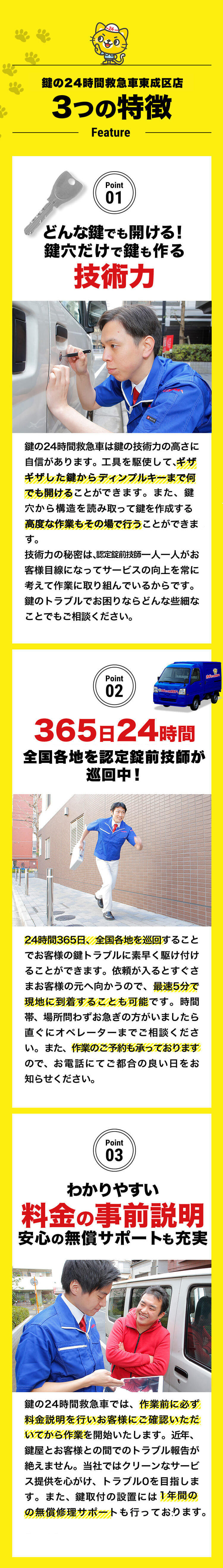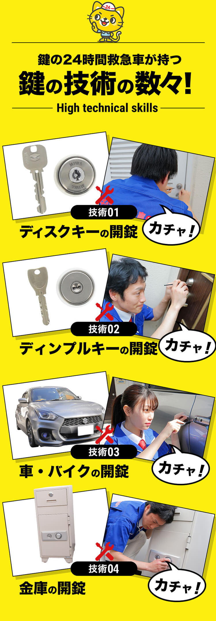 東成区で評価の高い「カギの出張24時間」は玉造、今里エリアで迅速に対応いたします。わかりやすい事前説明と正確な見積もりを通じて、お客様の信頼を得ることを心がけています。地元に根ざした丁寧なサービスを提供し、施工後はお客様の意見を大切にし、サービス品質を継続的に改善しています。